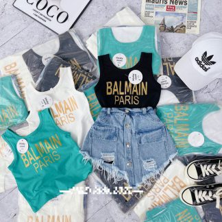 Set Chân Váy Jean Rách Phối Áo BALMAIN Cực Chất